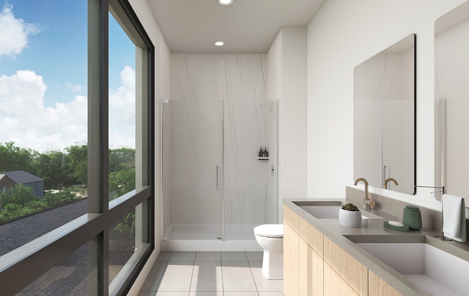 Thoughtfully appointed baths feature bronze fixtures, granite vanities, and full tile surrounds for a spa-like experience.